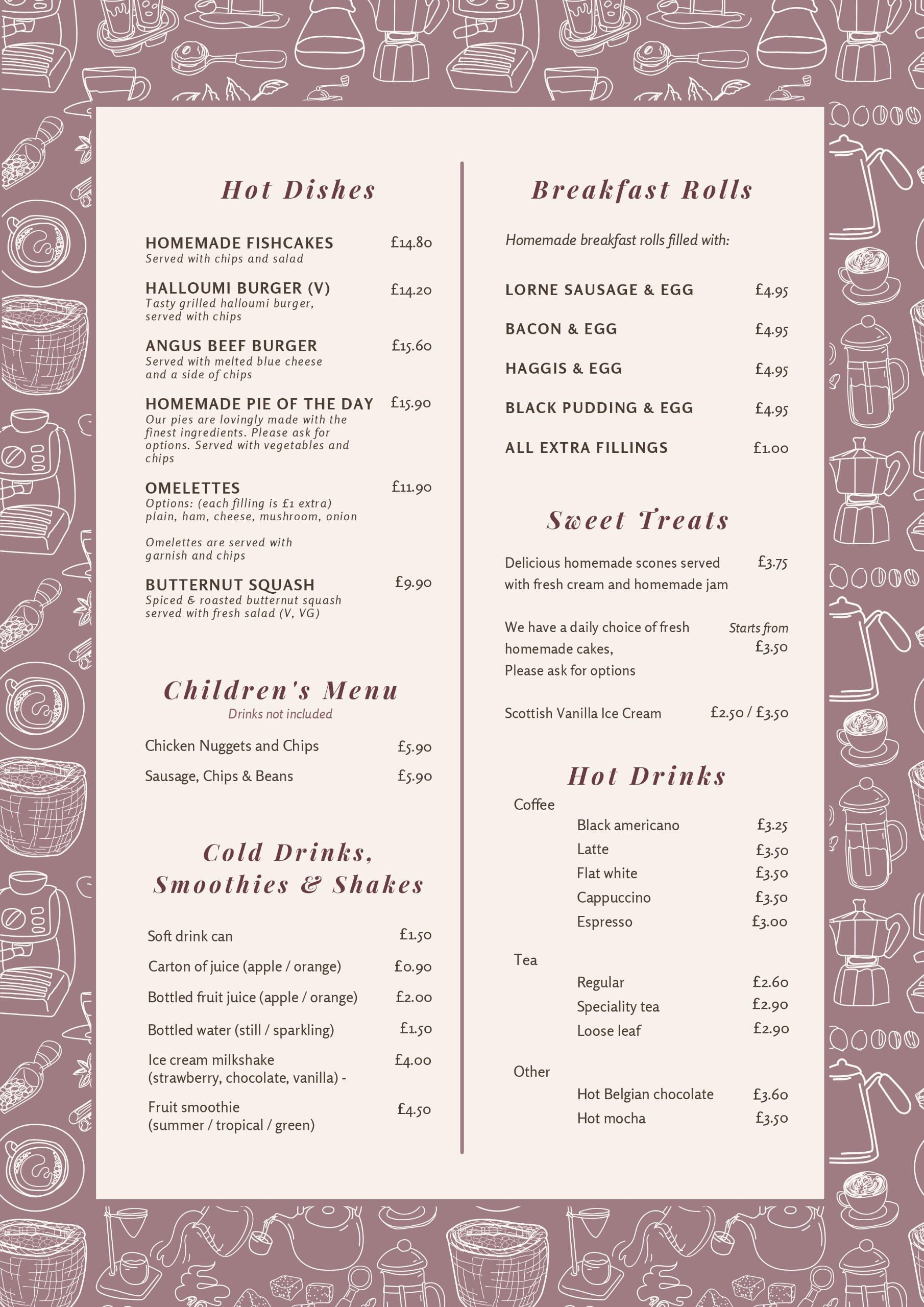 A full Scottish breakfast is included with your stay, served each morning in our tearoom, along with freshly made tea & coffee
